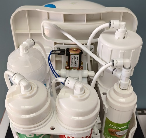 سیستم تصفیه آب این دستگاه در پنج مرحله انجام میشود تا تمام ناخالصیها و آلایندههای موجود در آب از بین برود. سه فیلتر اول شامل پلیپروپیلن (PP)، کربن گرانول (GAC) و کربن بلاک (CTO) هستند که رسوبات، ذرات معلق، کلر و بوهای نامطبوع را حذف میکنند. مرحله چهارم که قلب سیستم است، ممبران اصلی **FilmTec ساخت آمریکا با ظرفیت ۱۰۰ گالن** میباشد که قادر است بیش از ۹۸٪ از نیترات، سرب، جیوه، آرسنیک و سایر مواد مضر را حذف کند. در مرحله پنجم، فیلتر پست کربن فودگرید باعث بهبود طعم و بوی آب میشود تا در نهایت آبی سبک، شفاف و خوشطعم در اختیار شما قرار گیرد.